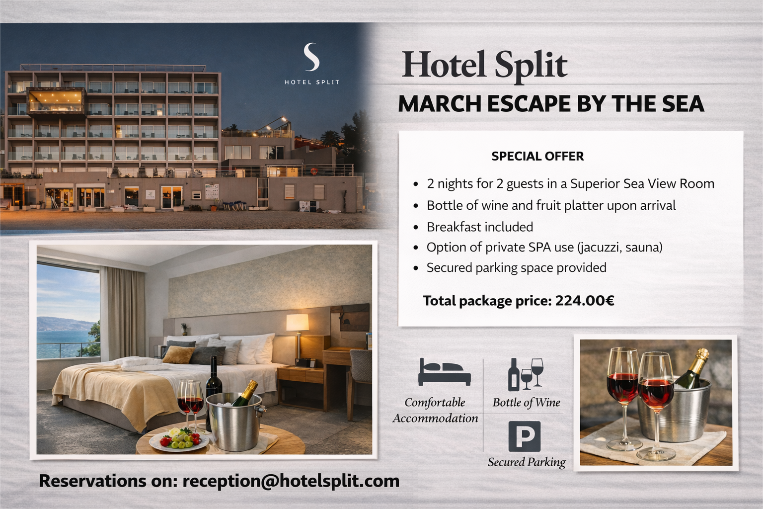 Hotel Split is a family-run, award-winning design hotel with sustainability at its foundation. You will find us at a comfortable distance from the noise and rush of the old city centre. Close enough to discover the rich cultural heritage and its nearby natural amenities. A carefree retreat with a priceless view of the Adriatic Sea, just a few steps from a pebble beach.